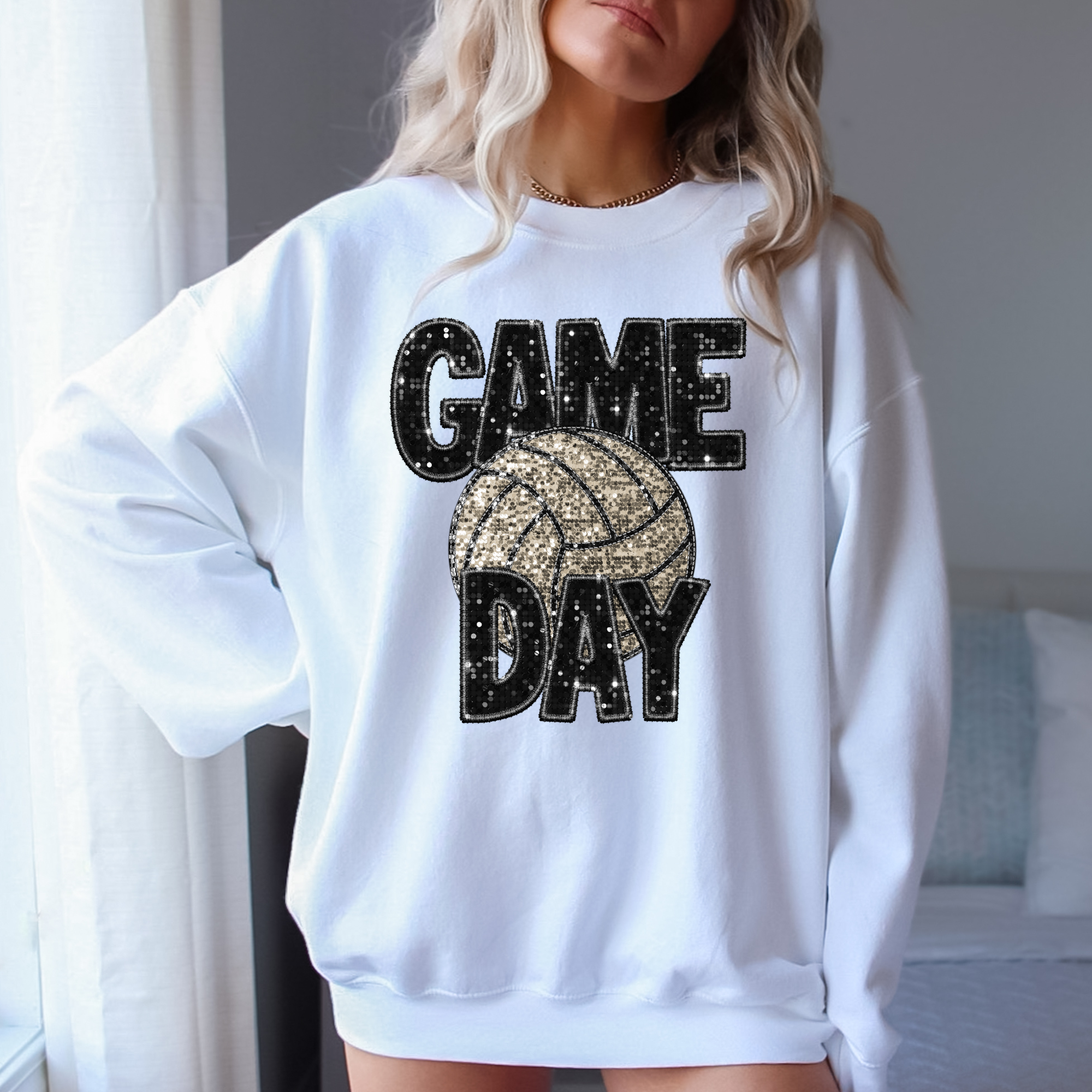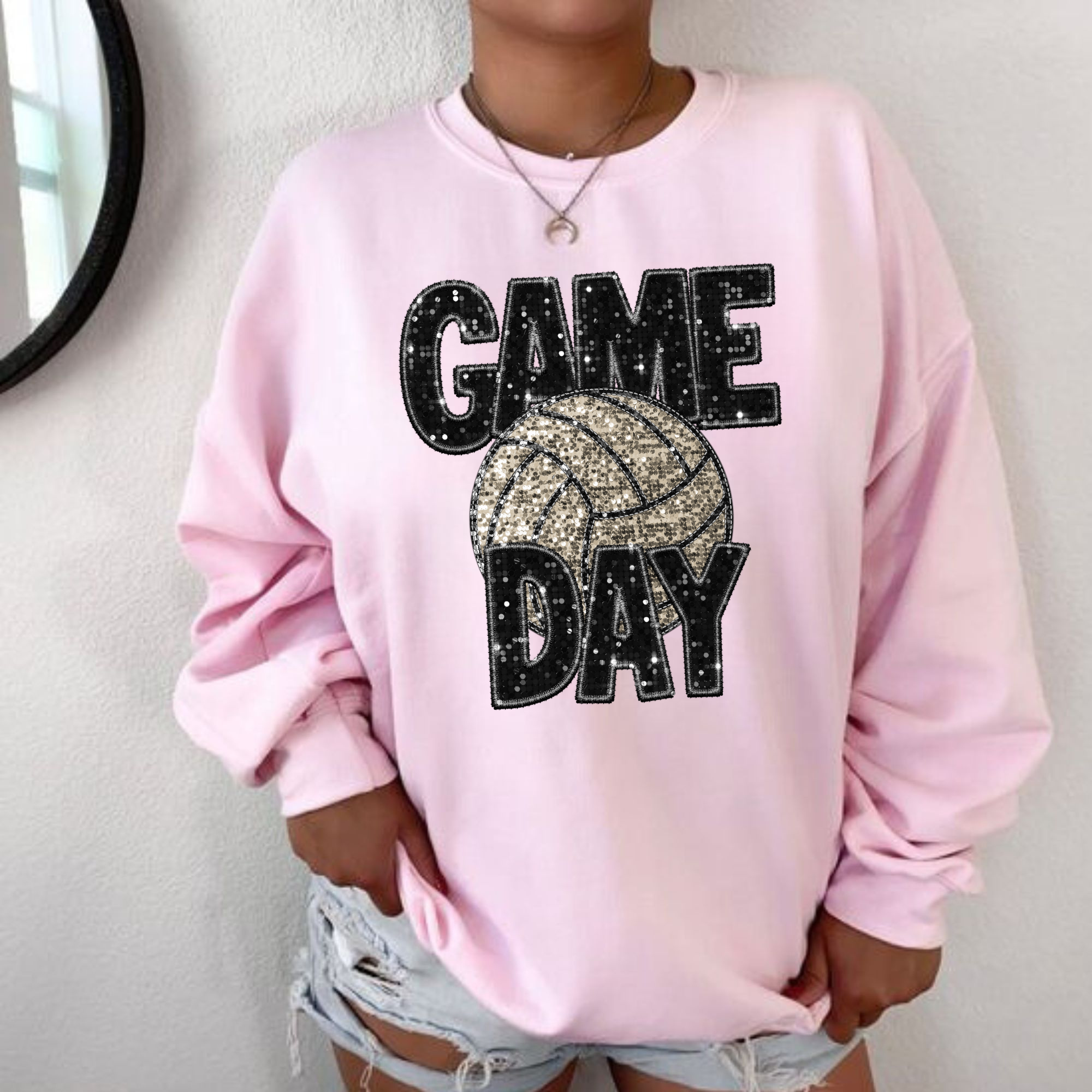 Glitter Volleyball Game Day Crewneck Sweatshirt