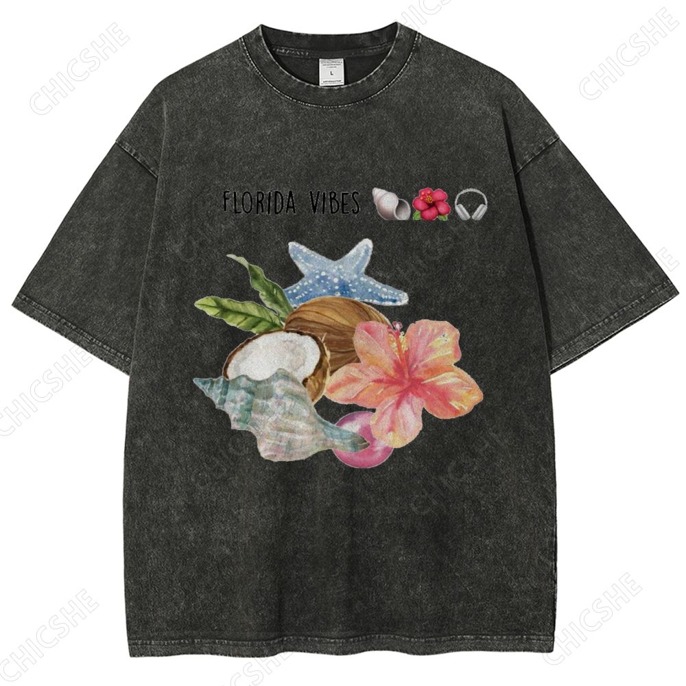 Unisex Florida Vibes Flower Printed Washed Tee
