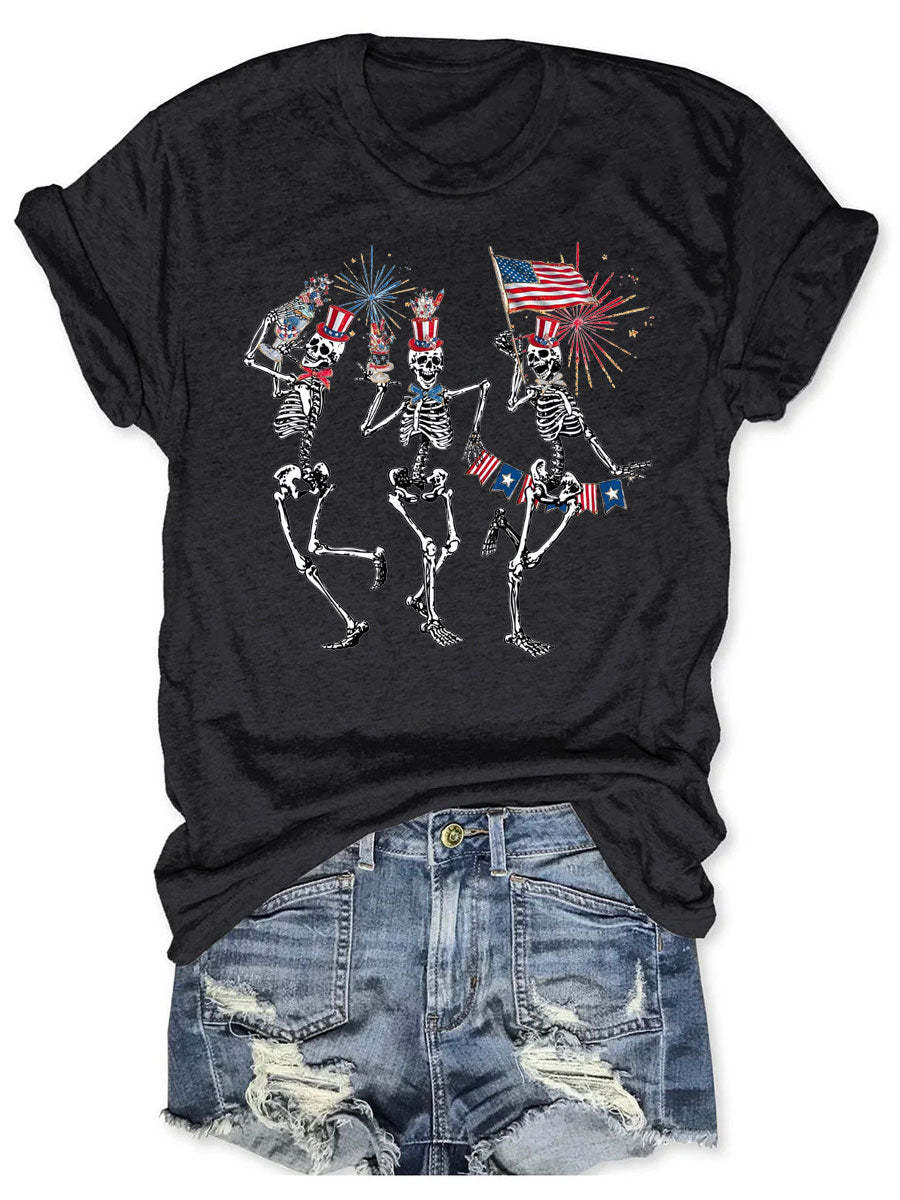 Dancing Skeleton American Flag T-shirt